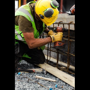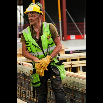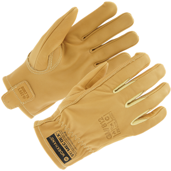 Spesiallaget jernbinderhanske med kuttforsterket håndflate. Smidig, vannavstøtende geiteskinn.